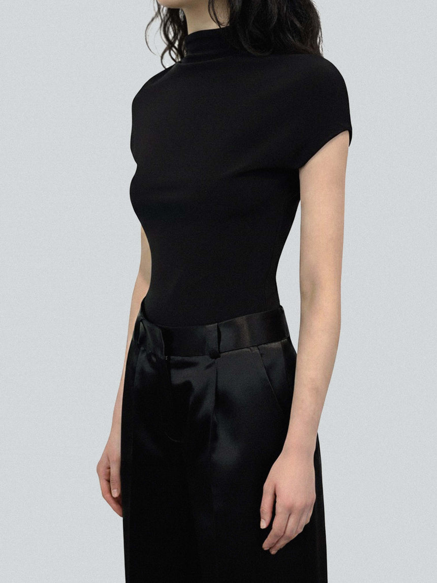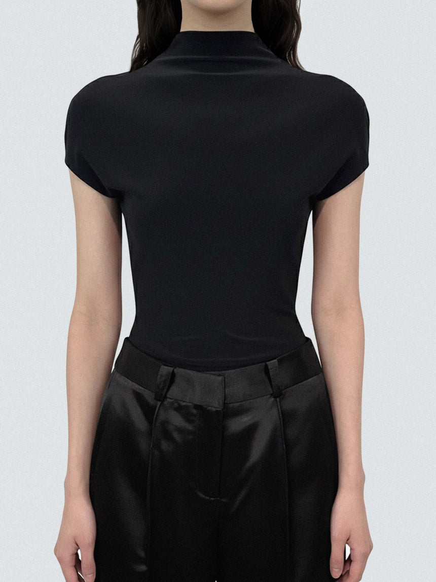 (SS26 PRE-ORDER) LOGO TAG SEMI-MOCK NECK TOP BODYSUIT - BLACK